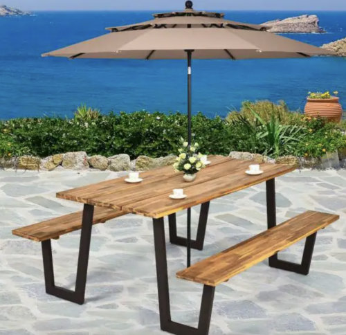 MESA PICNIC SOPORTE ACERO, TABLONES DE MADERA 1 1/2 "