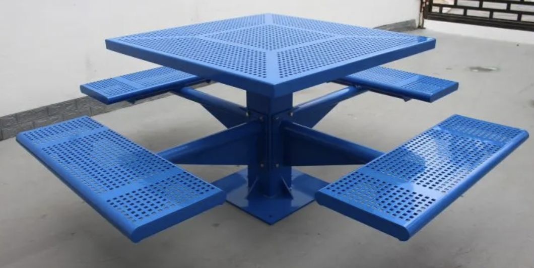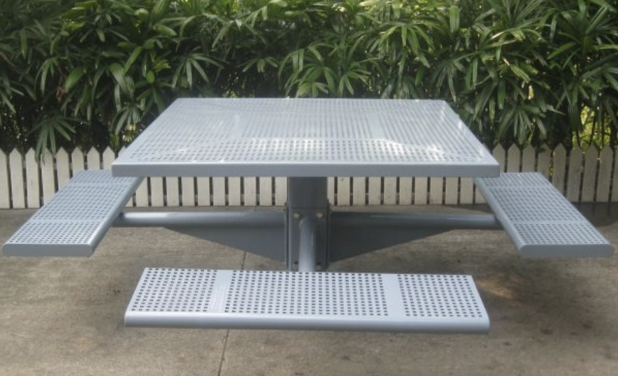 MESA PICNIC CUADRADA BASE CRUZ LAMINA PERFORADA