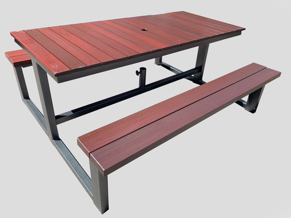 Mesa pícnic madera con soporte de acero, tablones con acabado poliéster en 3 diferentes presentaciones,