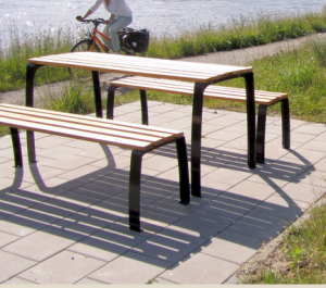 MESA PICNIC MADERA Y ACERO BANCAS SUELTAS