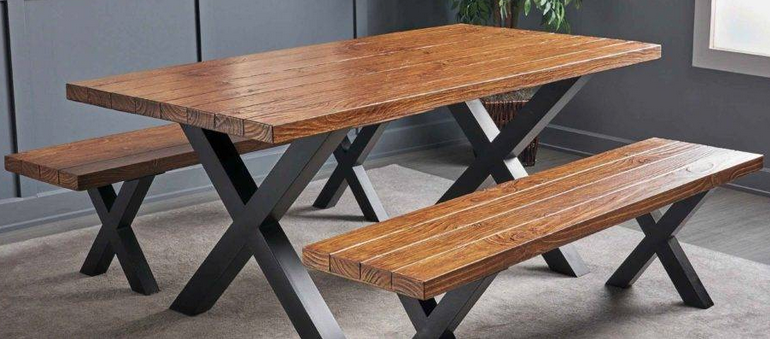 SOPORTES DE ACERO PTR DE 3X2 EN LA MESA Y LAS BANCAS