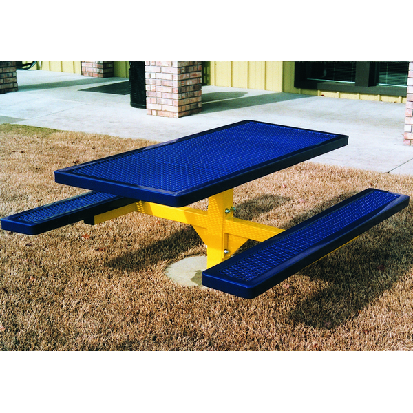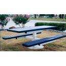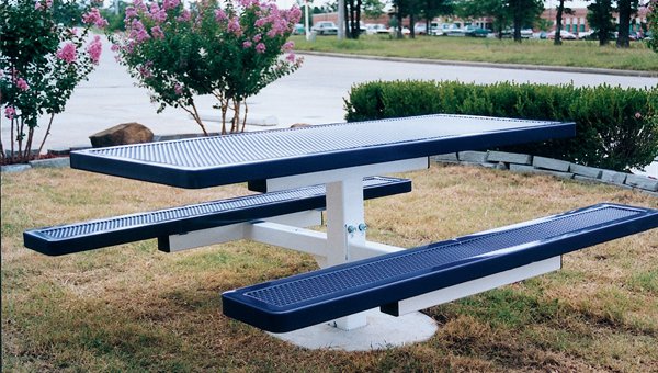 Mesa RECTANGULAR de picnic,  2 bancas, fabricadas en acero, malla rombo calibre 16, soportes en cruz, base para fijar al piso con tornillo expansivos