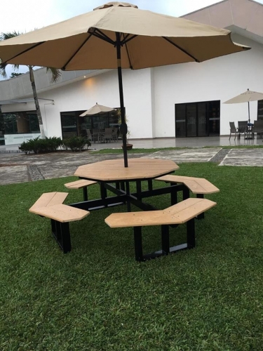 Mesa Picnic octagonal, medida mesa 1.20 m altura 74 cm asientos de 24 cm diametro total 2.30 m