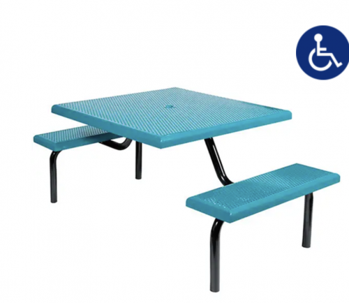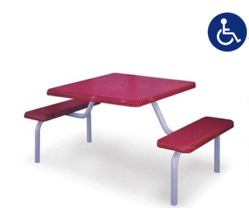 MESA PÍCNIC PARA DISCAPACITADOS, ENTRADA PARA DOS SILLAS DE RUEDAS, Y DOS BANCAS DE MEDIDA DE 1.10 M, LA MESA TIENE UNA MEDIDA DE 1.20 M X 1.20 M, FABRICADA CON ACERO, ALTURA 78 CM DE LA MESA,  PINTURA ELECTRO ESTÁTICA,
