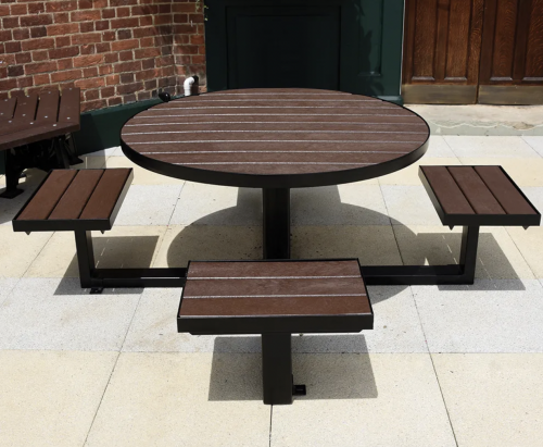 MESA REDONDA PLASTIMADERA,(ECOLOGICA)  SUPERFICIE DE MESA DE 1.10 M, ASIENTOS DE 65 CM X 45 CM ALTURA DE MESA 74 CM