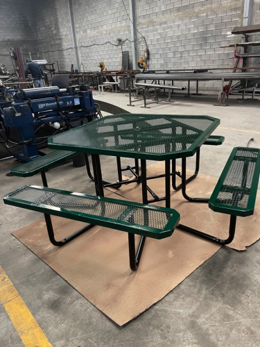 Mesa picnic de acero en forma hexagonal