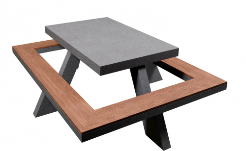 MESA PICNIC CUADRADA, CUBIERTA PLASTIMADERA MEDIDA 1.20 M X 1.20 M ALTURA 75 CM, ASIENTOS 25 CM X 1.75 CM, SOPORTE DE ACERO PATAS COLOR NEGRO PINTURA EN POLVO HORNEADA, PREPARACION OPCIONAL