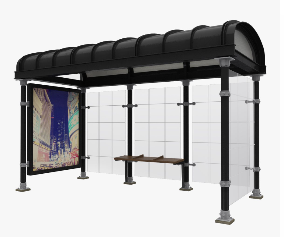 PARADERO TECHO CURVO 4 M DE LARGO CON CAJA PUBLICITARIA DE LUZ,  ALTURA 2.70 AL MARCO Y 3 M TOTAL ALTURA, 1.40 M DE FONDO,