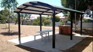 CUBIERTA DE ACERO CON LAMINA GALVANIZADA PINTRO, POSTES REDONDOS DE ACERO Y TRANSVERSALES POSTES PUEDEN SER AHOGADOS O PIJADOS CON EXPANSIVOS ALTURA DEL TECHO 2.70 M A LA PARTE MAS ALTA MEDIDA ANCHO
