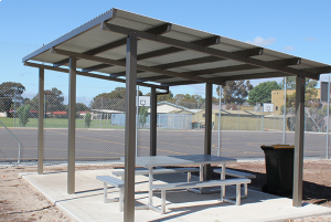 CUBOERTA PARA PARQUES 6M X 4 M FABRICADA EN PTR 3", LAMINA GALVANIZADA PINTRO ALTURA TOTAL 2.70 M   INCLUYE 6 POSTES, LARGUEROS, LAMINA GALVANIZADA INSTALACION
