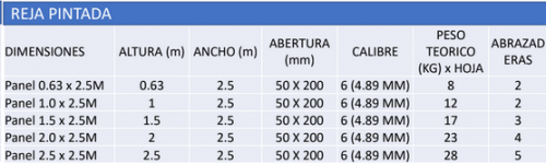 REJA CLÁSICA MEDIDAS DESDE 0.63M X 2.50 HASTA 2.50 X 2.50 M CADA PANEL