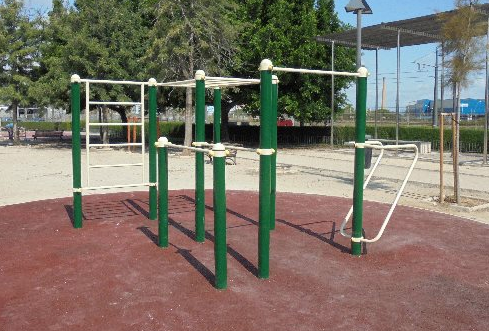 Sistema calistenia que incluye barras, escaleras pasamanos, cuerdas,