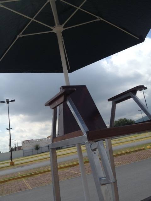 altura 1.60 m , escalera con soclos, asiento de madera así como los descansa brazos