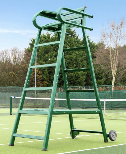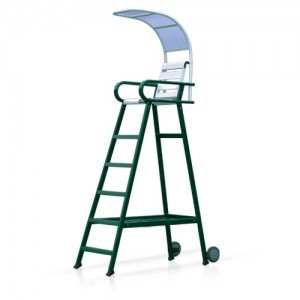 SILLA PARA ARBITRO DE TENISESCALONES Y ASIENTO DE ALUMINIO, INCLUYE LLANTASMEDIDA 2.M A LA ALTURA DEL RESPALDO, ANCHO 55 CM, FONDO 1.40 MPINTURA VERDE ELECTROESTATICA, INCLUYE LLANTAS PARA SU MOVILIDAD