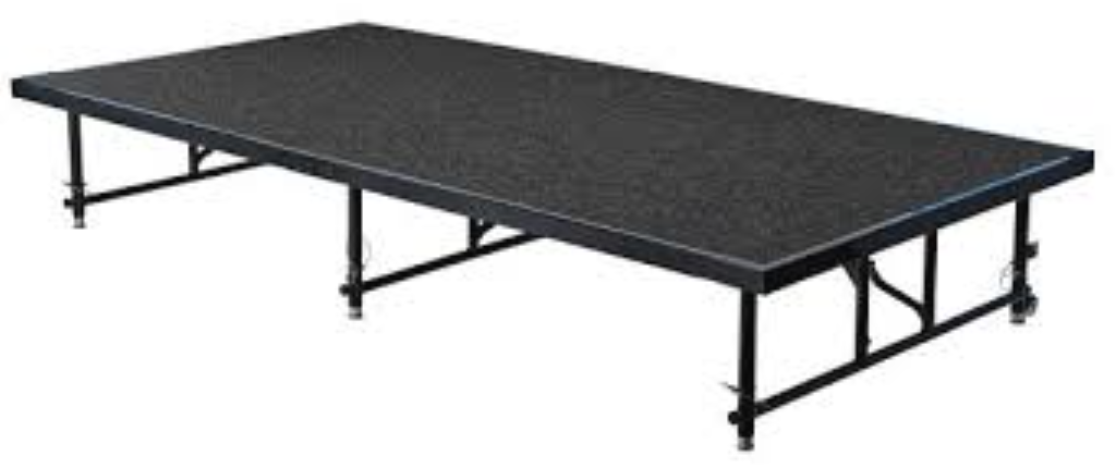 TARIMA DE 1.22 X 2.44 M, ALFOMBRADO DEL COLOR QUE LO DESEE EL CLIENTE, ALTURA PUEDE SER DE 40 XM , 60 CM , 90 CM 0 120 M
