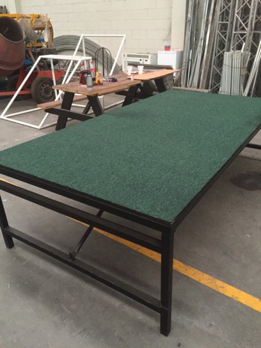 TARIMA DE 1.22 M X 1.22 M ALTURA 40 CM O 60 CM, FABRICADA EN ACERO, ALFOMBRADA, PATAS PLEGABLES