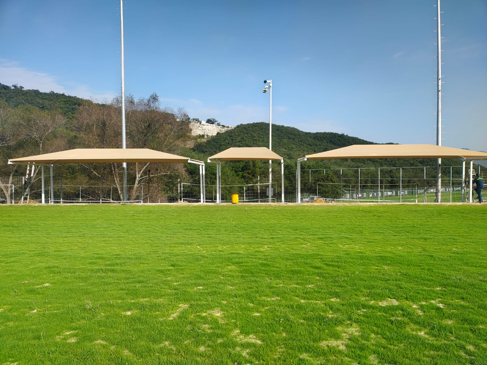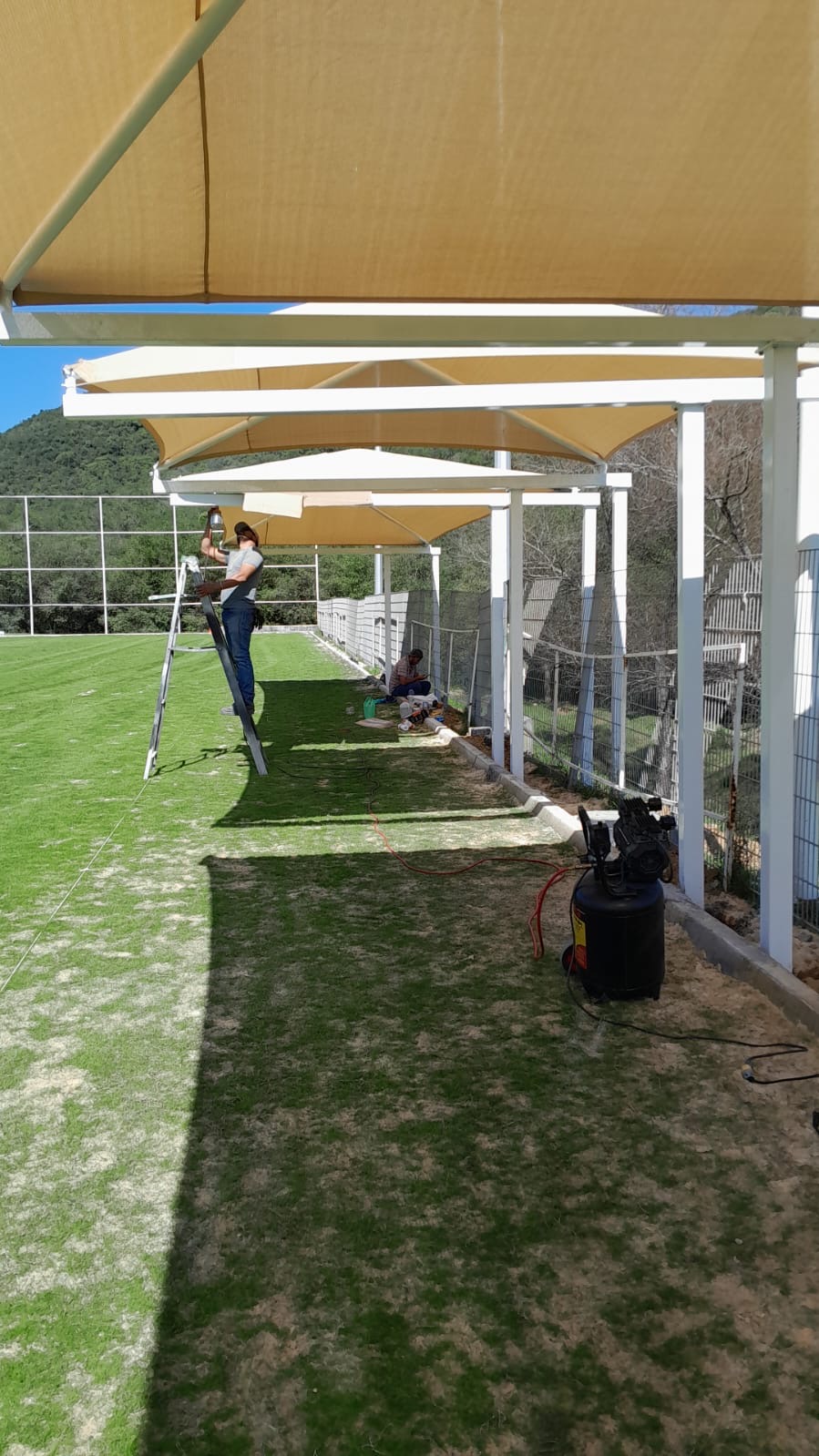 TECHO MALLA SOMBRA, ESTRUCTURA DE ACERO , POSTES DE 3" X 3",  3M DE ALTURA, DOBLE POSTE EN LOS EXTREMOS,