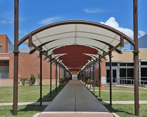 fabricado con tubo de acero de 3 y 2 pulgadas cédula 30, altura total 3 m. postes cada 4 m, cimentados en el piso