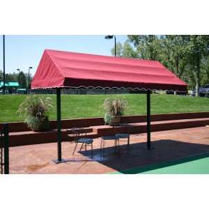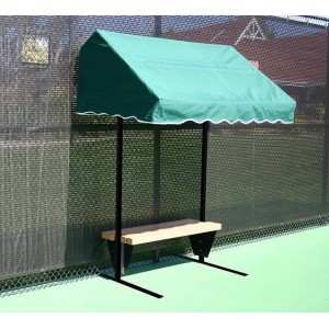 BANCA CENTRAL PARA CANCHA DE TENIS FABRICADA EN ACERO CON AIENTO DE MADERA DE PINO TRATADA Y TECHO DE LONA POLIESTER, CONFECCIONADA CON BASTILLA ESPECIAL   NEDIDA 2 M DE LARGO X 1.80