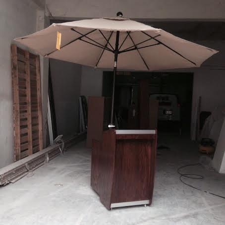 Sombrilla inclu¡ida, podium color nogal obscuro.