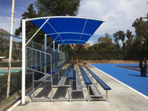 En dias pasados se termino la instalación de la grada del tec de monterrey en la ciudad de cuernavaca, grada de 9 m x 10 filas de asientos con malla sombra 4.5 m de profundidad Mucha falta les hacia esta grada.