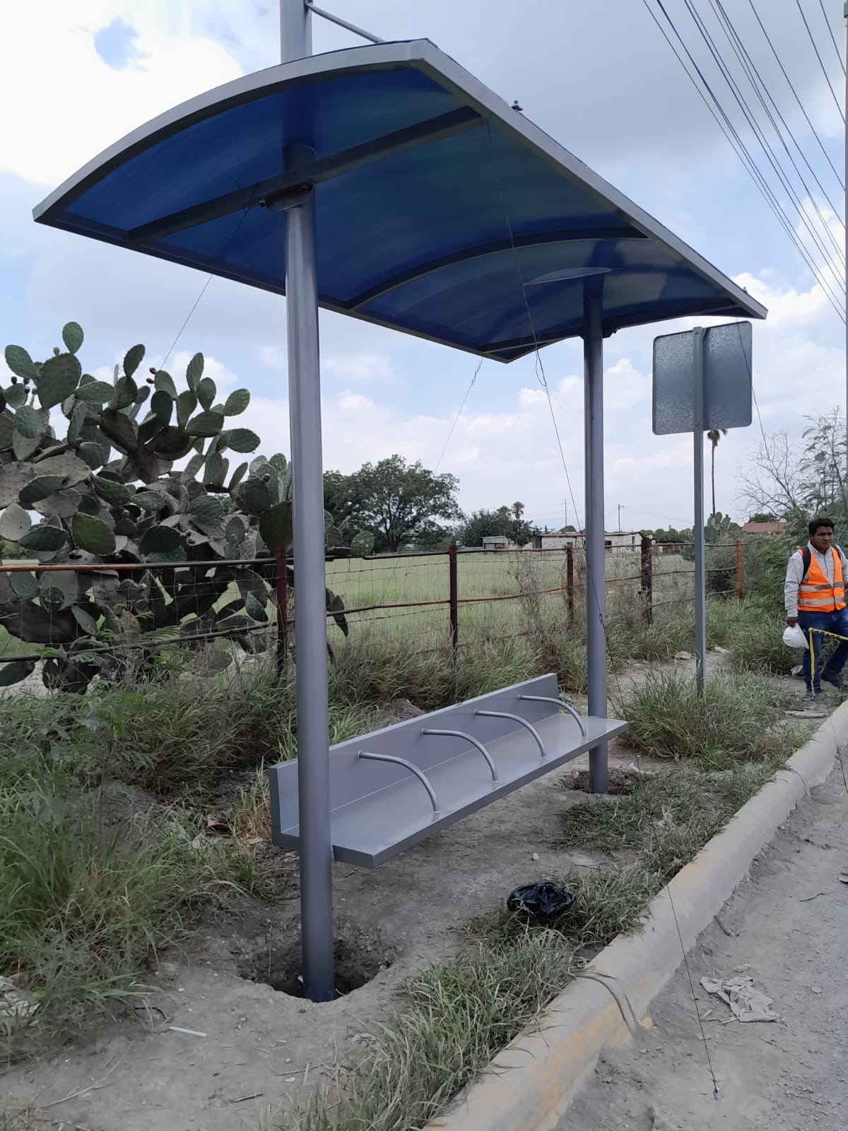 PARADERO INSTALADO EN MAQUILADORA EN MONTERREY N.L 100& DE ACERO Y POLICARBONATO CELULAR EN EL TECHO, AHOGADO