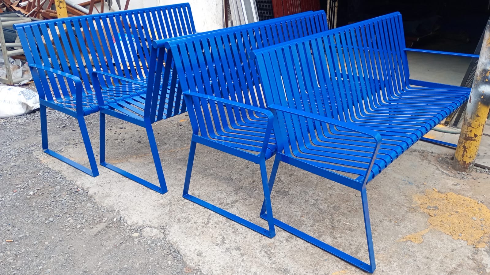 BANCA PARA PARQUES O JARDINES, FABRICADA CON SOPORTE DE ACERO PTR, ANGULO Y SOLERA,