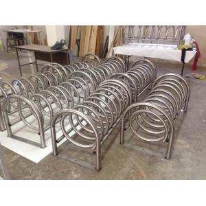 Estacionamiento para bicicletas fabricado en forma de espiral tubo acero inox 1.5" para 5 bicicletas, con soportes   Preparación para anclar al piso