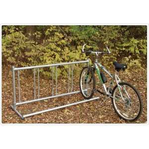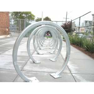 Estacionamiento para bicicletas para 5 bicicletas,              fabricadas en acero galvanizado, con marco de acero soldado a arcos.