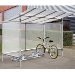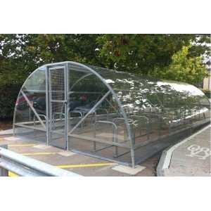 Techo para estacionamiento bicicletas, modelo invernadero, cubre en un área de 10 m x 4 m a más de 60 bicicletas.