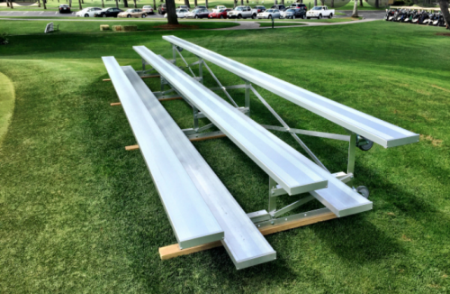 GRADA DE ALUMINIO 14 M X 3 FILAS DE ASIENTOS PASILLO CENTRAL 2 M, PASAMANOS (OPCIONAL) CAPACIDAD 100 PERSONAS PARA CANCHAS DE TENIS, FUTBOL SOCCER ESCOLAR, O GIMNASIOS