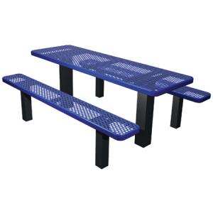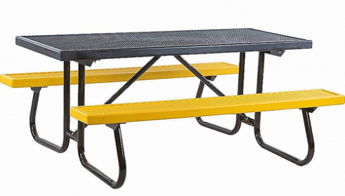 Mesa picnic de acero, con preparación par sombrilla opcional, fabricación en acero, lamina perforada, lamina calibre 14, acabado galvanizado en frió, y pintura automotriz con poliester anticorroción Medida 1.60 m de